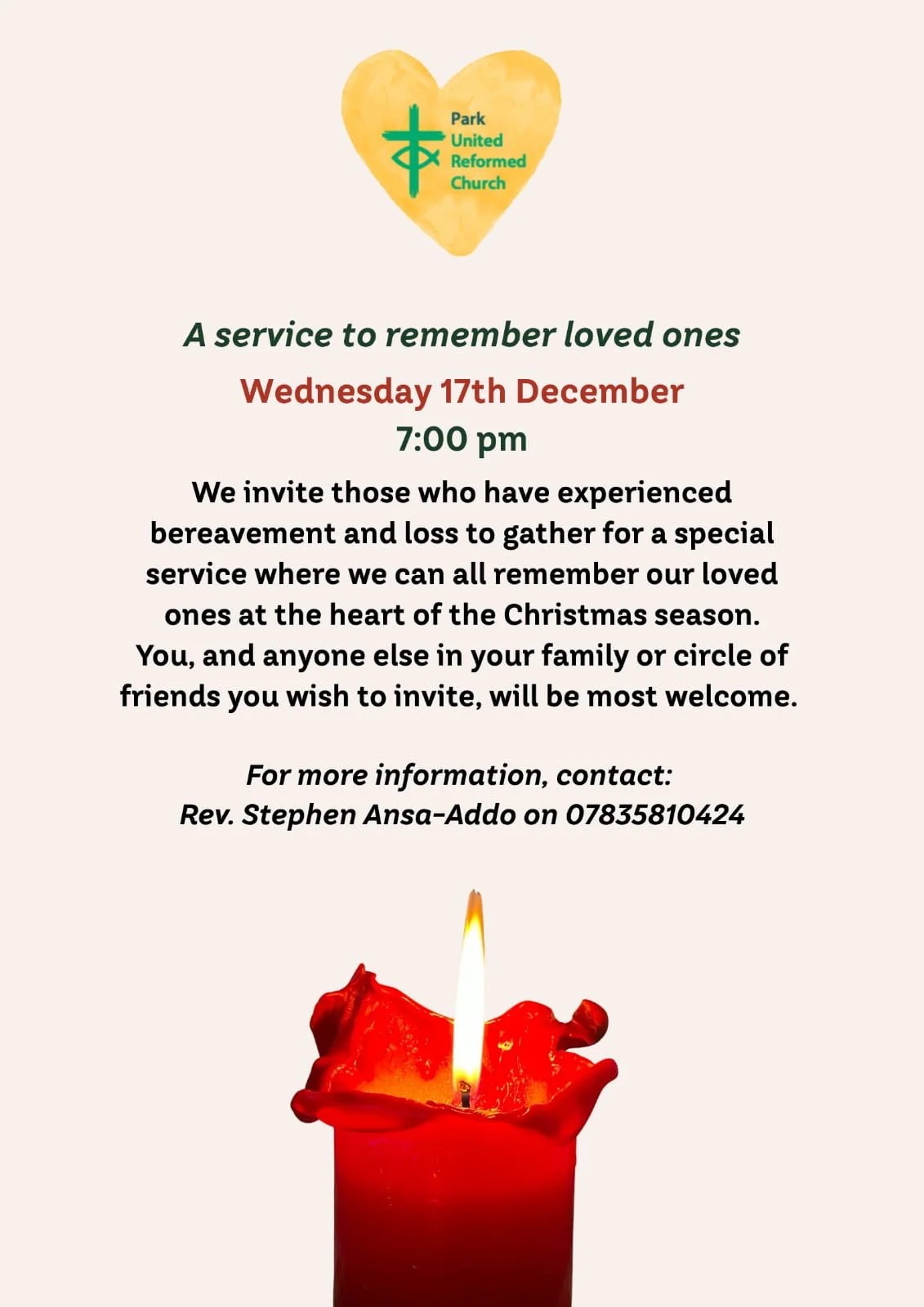 There will be mince pies and other refreshments afterwards. If you can help serve refreshments, please speak to David Farnworth / Mike Croall or let the office know.