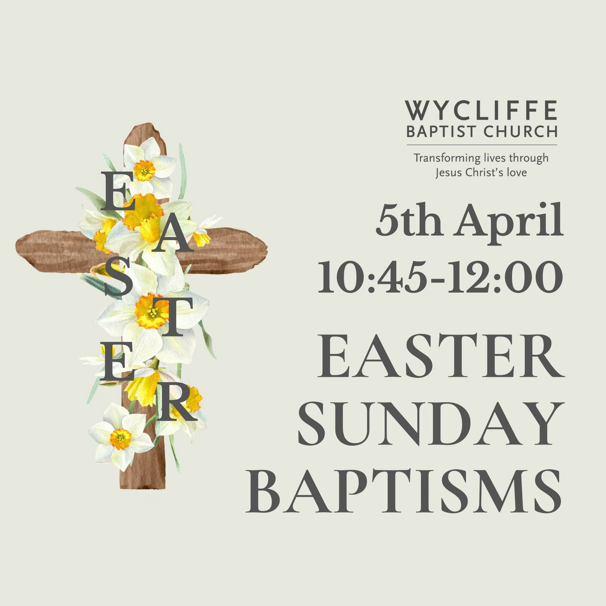 Join us 10:45 for a Easter Sunday Baptismal Service in the Kings Room. We will be celebrating the baptism of 7 candidates. Please be aware that we will have an overflow room with the livestream in the Wycliffe Room due to the large number of people expected.
